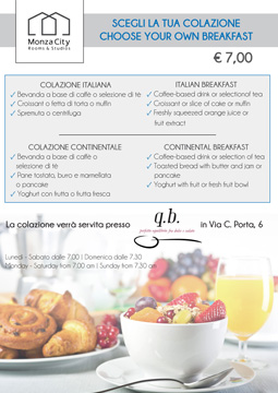 One voucher for Italian or continental breakfast costs € 6,00 regular - € 10,00 big.